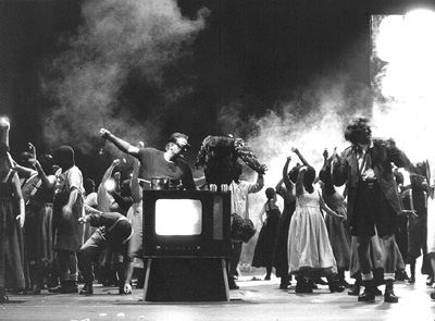 | Weber hat zwei Sphären gestaltet: fröhliches, gesundes Jägerleben und das Walten dämonischer Mächte. Die schlichte Poesie des unverfälschten Naturraumes verwandelt sich in die unheimliche Sphäre des Dämonischen, in die der Jägerbursche Max gerät, weil er sich in der realen Welt verlassen glaubt. Bedrängt von rigiden Gesellschaftsnormen, in höchster Not, überläßt er sich den finsteren Mächten. „Der Freischütz” berührt so noch eine andere Zeiterscheinung: die Lust am Grauen, die von den alltäglichen Nachkriegs-Schrecknissen ablenkt, diese abmildert und doch genau den Kern der Angst trifft. Nicht nur die Handlung, vornehmlich die Musik macht erlebbar, wie brüchig die heile Jägerwelt ist. Ein musikalischer Geniestreich ist die Wolfsschluchtszene mit Klängen des Windesrauschen, Käuzchenruf, Pferdegetappel und grotestke Visionen des machtvollen Unheimlichen, Grauenvollen. Den Jägern hat der Komponist Hörnerklänge zugeordnet, schlichte, eindringliche Melodien gefunden, die er durch eifriges Studium von Volksmelodien fand. Das naturnahe Landleben charakterisieren Stimmungen, die Landschaft und Gemüt beschreiben: Lieder, kraftvolle Chöre, ländliche Tänze ebenso wie faszinierende Natur-Illustrationen. Der Symbolgehalt des Waldes wie dessen Bedeutung für die Deutschen, von der Romantik sehr befördert, geht eigentlich auf des Römers Tacitus Berichte über die Germanen aus dem Jahre 100 v. Z. zurück. Vom Glauben der Germanen an ihren Ursprung im Dunkel der Wälder wird darin erzählt, von ihrer „heiligen Scheu” vor bestimmten Dickichten, von Baum-Kulten und rituellen Feiern in Hainen. Tacitus' „Germania”, die im 15. Jahrhundert wieder aufgefunden wurde, nutzten die Volkskundler für Mentalitätsbeschreibungen, Nationenvergleiche, Sozialtheorien und zitierten sie bis ins 20. Jahrhundert hinein als Quelle. Wie umstritten diese Quelle auch sein mag, bietet sie doch genügend Stoff für Mythen und Legenden. Die deutsche Literatur der Romantik ist voller Geschichten, in denen Elfen, Hexen und Drachen im Wald ihr Unwesen treiben. Und sie nährte die Vorstellung, daß der Wald für die Deutschen etwas ist wie für die Engländer das Meer. Obwohl der deutsche Wald doch inzwischen weitestgehend ein gepflanzter und kultivierter ist, behauptet sich nicht zuletzt durch das separate Naturleben dort ein Eindruck von Urwüchsigkeit und Unberechenbarkeit. Sehr wohl um seine Nützlichkeit in wirtschaftlicher (Holz), ökologischer (Klima) und mentaler (Erholung) Hinsicht wissend vermischt sich Erlebtes und Erzähltes auch heute zu einem Waldgefühl, das Düster-Unbestimmtes wie Erfrischend-Ursprüngliches einschließt. | ||