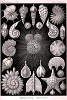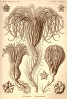 Biologen Ernst Haeckel (1834-1919). Haeckel war ein engagierter Verfechter von Darwins Evolutionstheorie, die er 1866 mit dem "Biogenetischen Grundregegesetz" weiterentwickelte. Sein ausgeprägtes zeichnerisches Talent stellte er ganz in den Dienst der Wissenschaft und brachte von seinen Forschungsreisen hunderte von Skizzen mit. Die Exposition „Ernst Haeckel. Kunstformen der Natur” bestand vor allem aus Haeckels Zeichnungen von Früchten und Samen, Muscheln, Medusen und anderen Kleintieren, die eine enorme Farbenpracht und Formenvielfalt vermittelten. Die beinahe dekorative Schönheit der Darstellungen beeindruckt ebenso wie ihre wissenschaftliche Präzision. Gerade das aufmerksame Beobachten und das genaue Fixieren von Einzelheiten Spezifika der Arten und deren Entfaltung führten zu neuen Gedanken in der Entwicklungstheorie. Ergänzt durch eine Sammlung historischer Mikroskope, Leihgaben des Deutschen Technikmuseums Berlin, veranschaulichte die Ausstellung das zunehmende Verständnis der Wissenschaft im 19. Jahrhundert für die unsichtbaren Bausteine des Lebens. Vom 17. bis 22. Juni 2003 wurde die Ausstellung durch Vorträge, Vorführungen und Lesungen begleitet. Dazu servierte das Fürstenberger Restaurant am Yachthafen Kulinarisches aus der „Welt der Wassersuppe”. PARTNER DER AUSSTELLUNG Ernst-Haeckel-Haus der Friedrich-Schiller-Universität Jena, Deutsches Technikmuseum Berlin, Brandenburgisches Literaturbüro Potsdam, NIKON GmbH, Brandenburgisches Landesamt für Denkmalpflege und Archäologisches Landesmuseum, Wilhelm-Leibniz-Gemeinschaft, Max-Planck-Gesellschaft und der Restaurant- und Hafenbetrieb am Yachthafen GmbH Fürstenberg/H. |