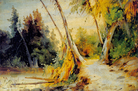 Laubgehölzen. In düsterer Stimmungsmalerei schilderte