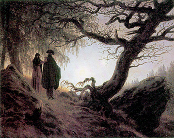 Mann und Frau in Betrachtung des Mondes. Um 1830/1835. Öl auf Leinwand. 340 x 440 mm. Berlin, Alte Nationalgalerie Berlin Öl auf Papier auf Leinwand. Nach 1833. 157 x 230 mm. Niederlausitzer Landesmuseum Cottbus |